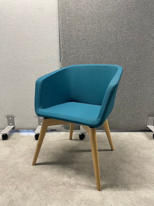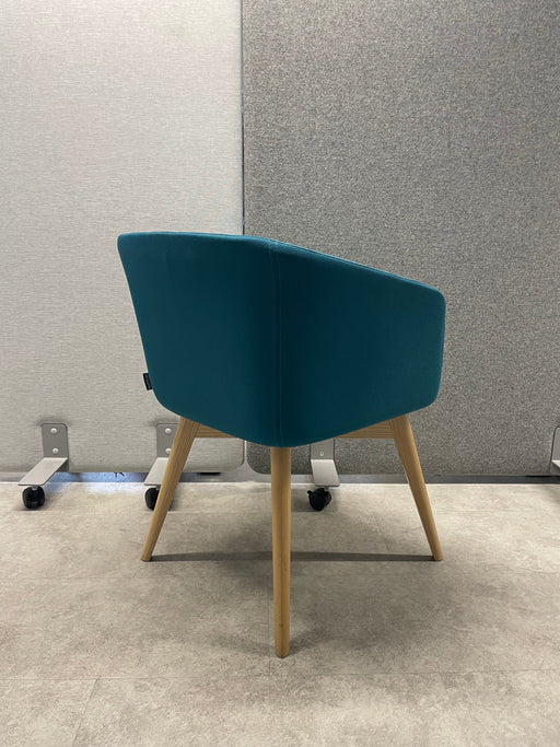 Narbutas turkoosi nojatuoli, jalusta puuta. Tuote uudenveroinen.